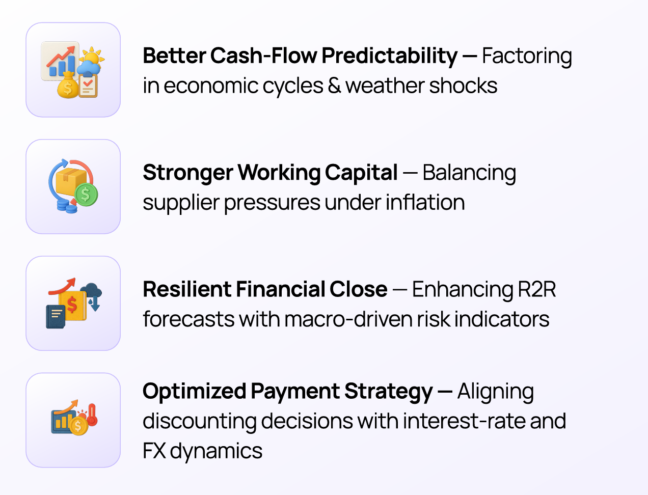 Turn F&A into a Proactive and Prescriptive Engine by Fusing Internal Insights with External Signals.